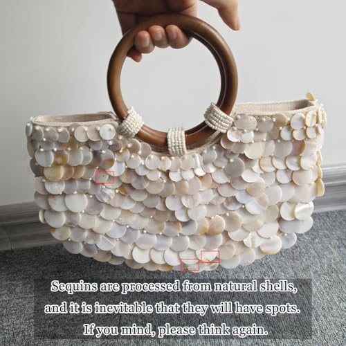 Shell Beaded Clutch Purse for Women Luxury Handmade Top Handle Bag Beach Evening Handbag for Summer Vacation