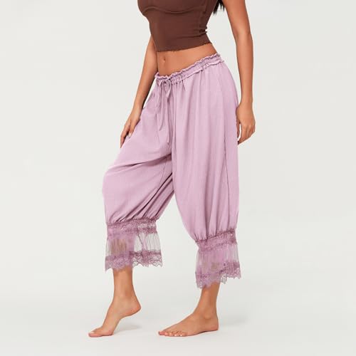 Specification: Women Long Bloomer Pants Lace Trim Victorian Pantaloons Capri Pants Lounge Pjs Pettipants Y2K Pajama Bottoms